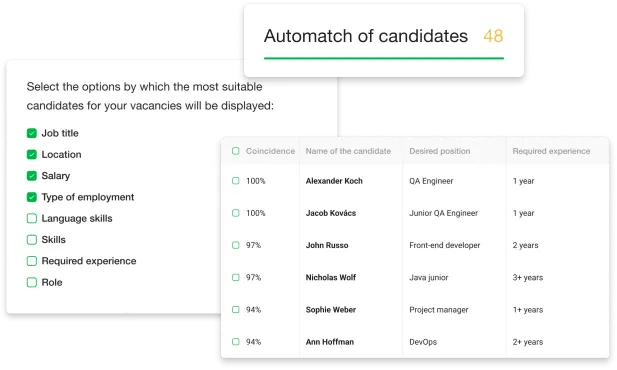 Additionally, our Automatch feature saves valuable time by effortlessly selecting relevant CVs. Simply input your search criteria, including skills, experience, and employment type, and let the system scan the database. It will then present you with candidates who are best suited for the vacancy.