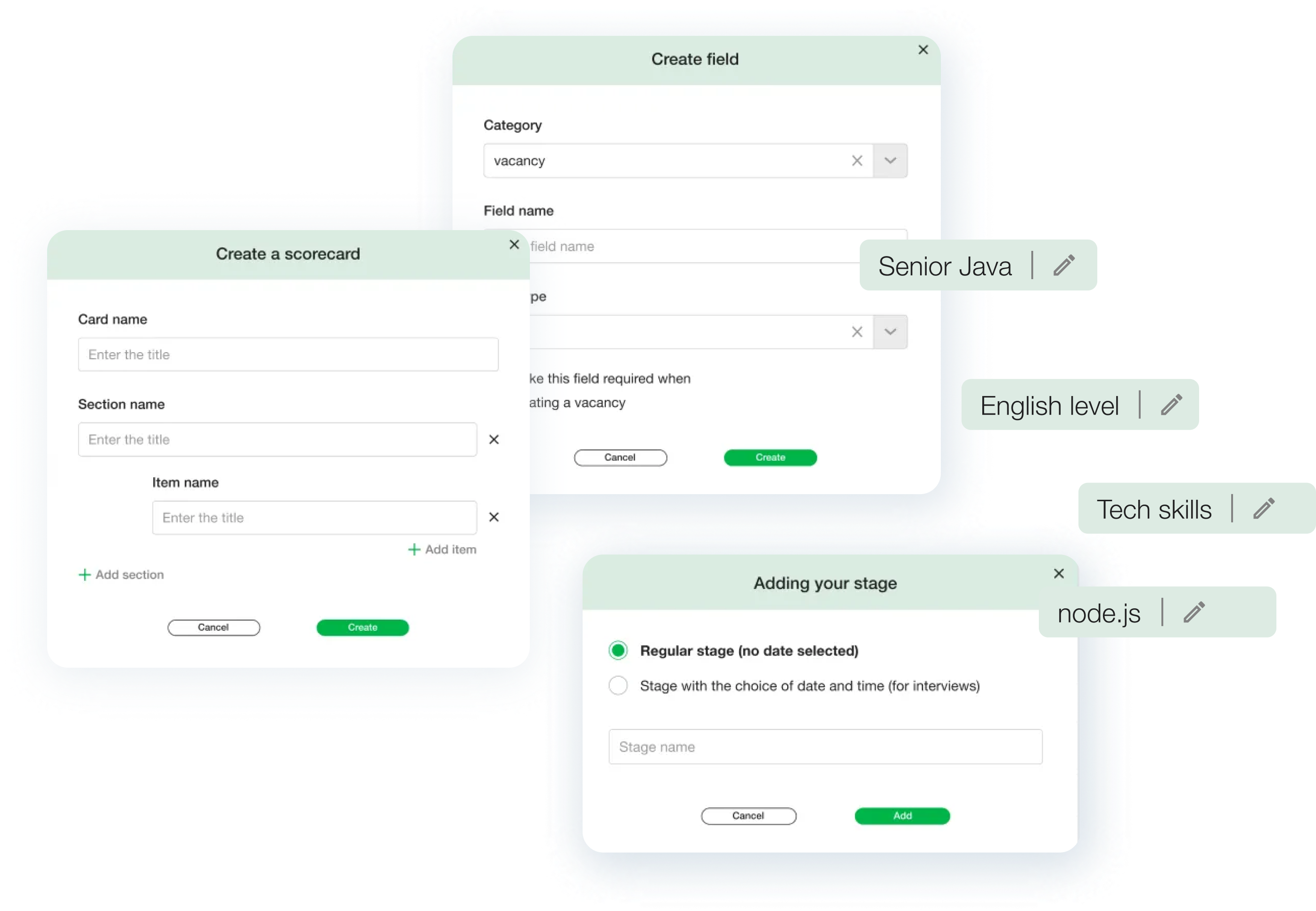 For more efficient work, customization is also provided – from personalizing the recruitment stages to adding custom fields to suit your needs, candidate sources, creating templates for communication with candidates, report builders, and many other useful features.