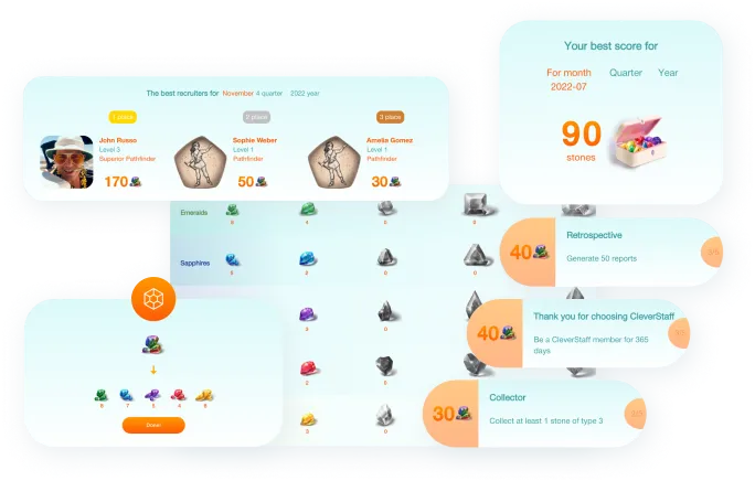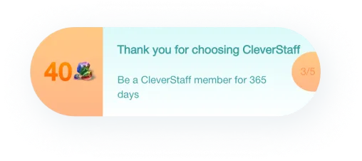 Working with CleverStaff isn't just efficient and easy – it's downright enjoyable, thanks to our unique gamification system. Say goodbye to monotony as our engaging game mechanics breathe new life into your daily tasks. With every achievement celebrated, the overall efficiency increases by 18.6%!