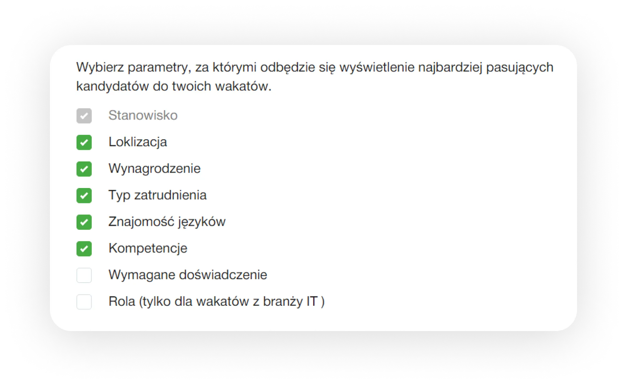 Elastyczna konfiguracja. CRM dla agencji rekrutacyjnych i rekruterów CleverStaff automatycznie analizuje CV i wybiera te najbardziej odpowiednie pod względem ustalonych parametrów. Kluczowe kryteria są konfigurowane w systemie do rekrutacji online przed rozpoczęciem poszukiwań.