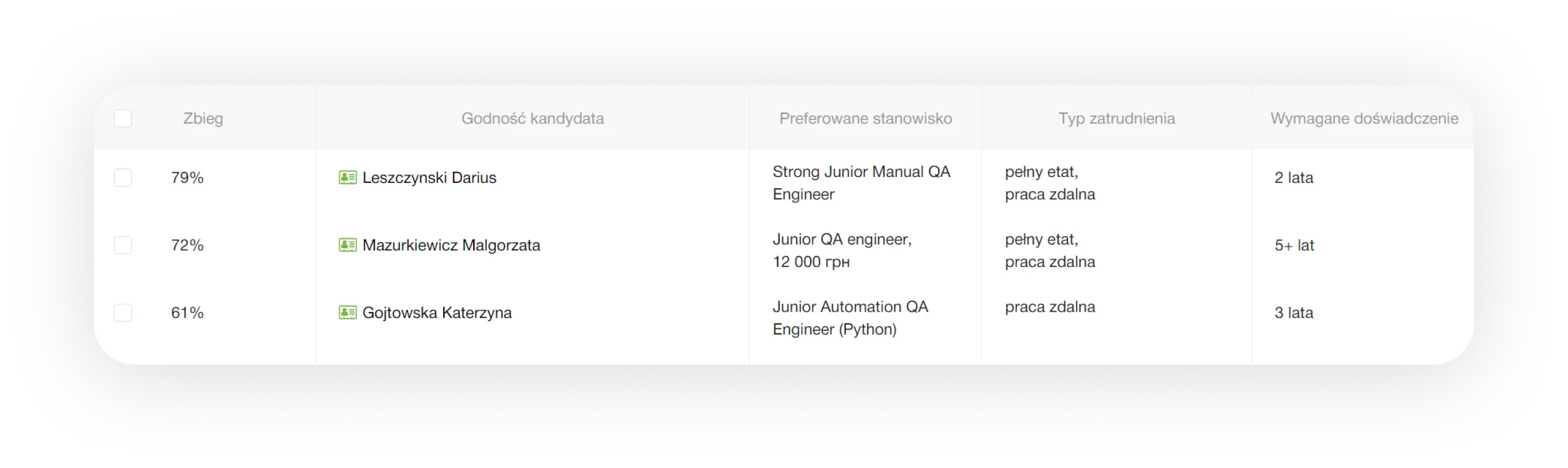 Zespół deweloperów, który na bieżąco komunikuje się z sourcerami, rekruterami i działem HR, bardzo dobrze zna ich potrzeby i bolączki. Dlatego program do doboru personelu CleverStaff został opracowany z uwzględnieniem potrzeb zarówno działów rekrutacyjnych dużych firm, jak i rekruterów freelancerów. Obecnie nasz popularny system ATS do rekrutacji umożliwia: