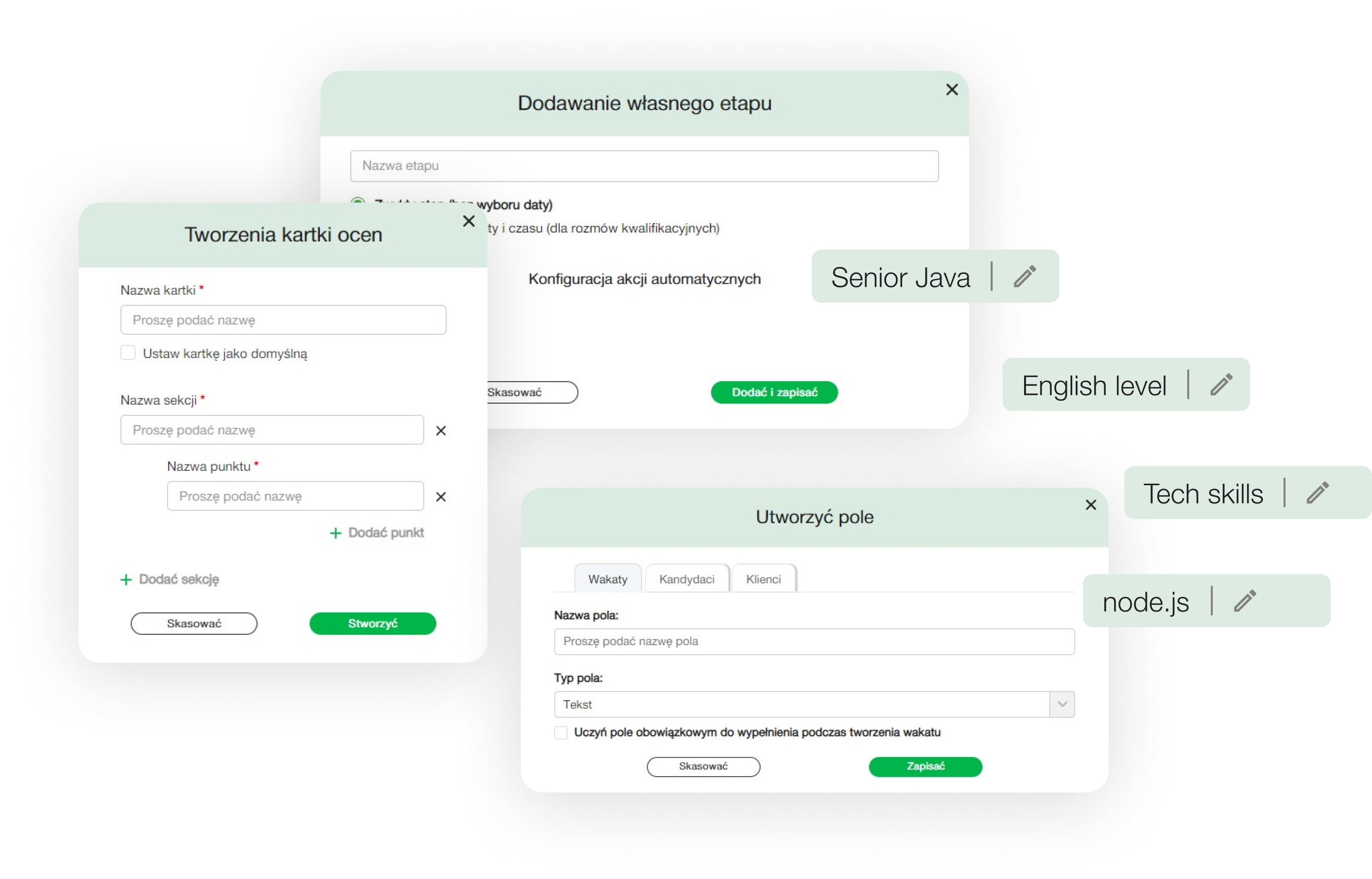 Co więcej w sprawdzonym systemie rekrutacyjnym CleverStaff jest przewidziana personalizacja: w serwisie znajdziesz cztery typy niestandardowych pól, ustawienia etapów doboru, osobiste źródła kandydatów i inne niezbędne funkcje.