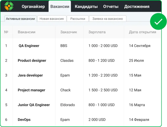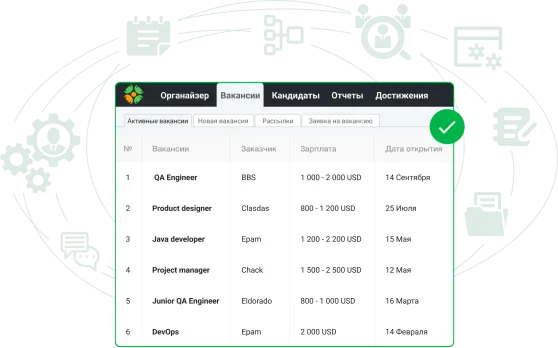 • Управление рекрутингом на всех этапах