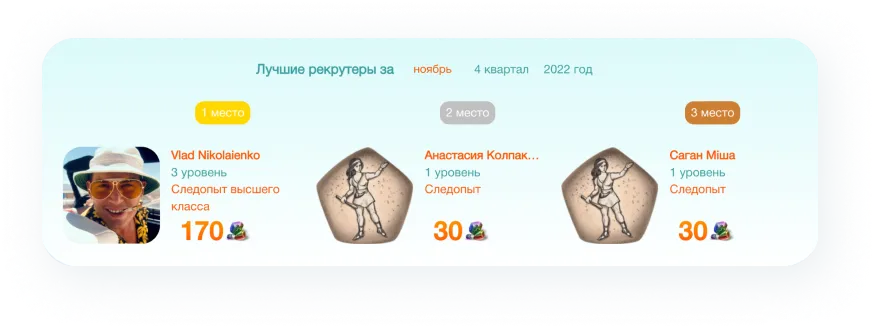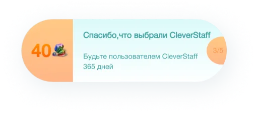 Но работать с CleverStaff не только легко и быстро, но еще интересно – благодаря системе геймификации. Увлекающие игровые механики оцифровывают работу рекрутера, а рутинные дела уже не выглядят так монотонно. Каждое достижение становится более заметным, а общая эффективность возрастает на 18,6%!